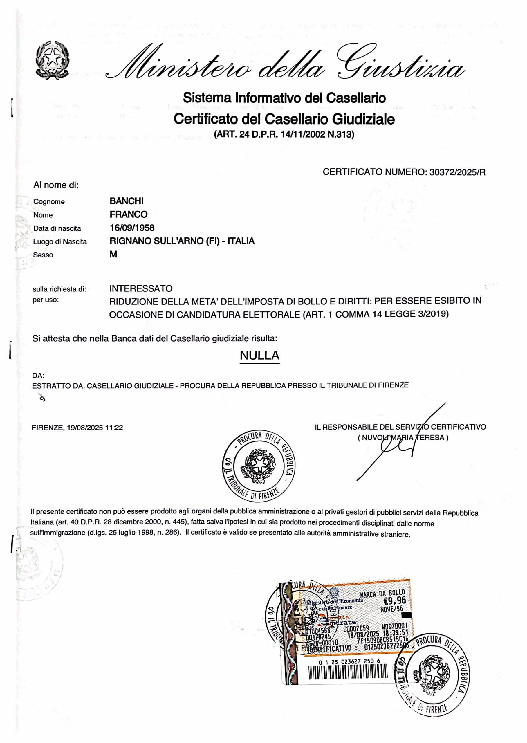 Consigliere di minoranza a Vernio e già presidente dell'Unione dei comuni della Valbisenzio;
